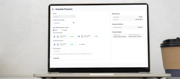Zenwork Payments simplifies vendor payment workflows and standardizes invoice capture, approvals, payment execution, and reporting.